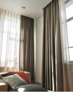 逆に言えば、カーテンを「フォーカルポイント」つまりは、視線が集まるポイントにすることで、お部屋に奥行き感を出し、広く見せることもできます。