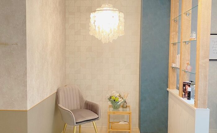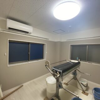 さて。先日から行っているサロン改装工事もいよいよ大詰め。クロスを貼り終わったので、カーテンや小物を飾りつけていきます。