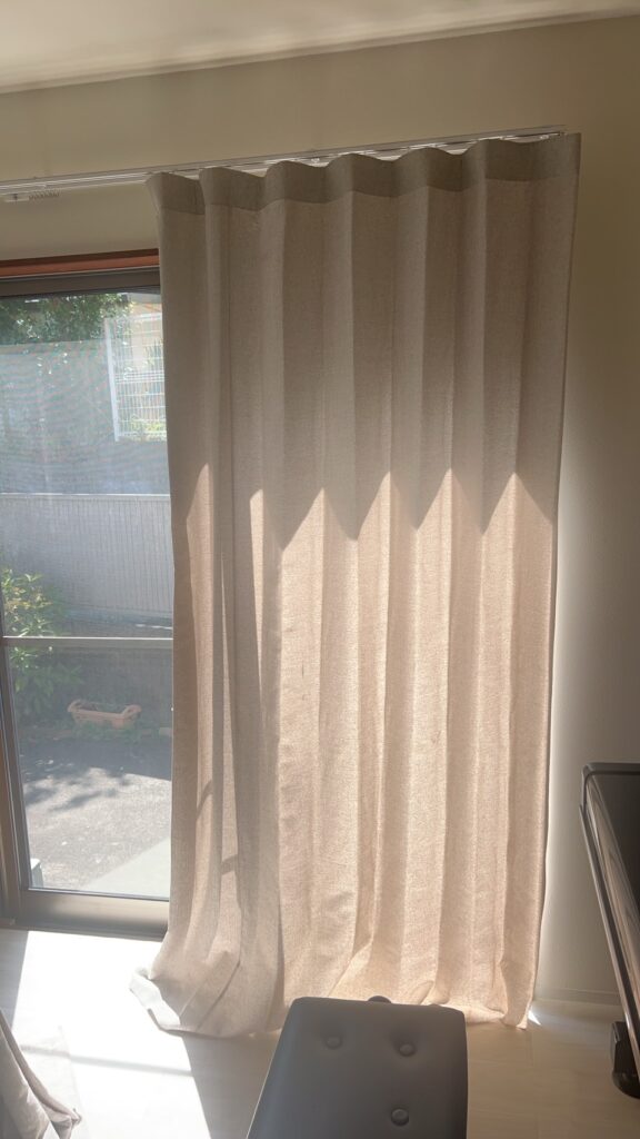 掃き出し窓のカーテンには、